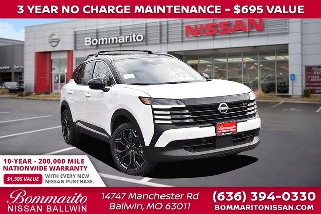 Aspen White 2026 Nissan Kicks SR 4D Sport Utility AWD CVT with Xtronic 2.0L DOHC Bose 10 -Speaker Audio, Cold Weather Package, Driver Seat-Mounted Supplemental Air Bag, Heated Front Seats, Heated Mirrors, Heated Steering Wheel, Panoramic Moonroof, Rear Floor Heater Ducts, SR Premium Package. 27/34 City/Highway MPG Every New Nissan receives a 10 year/ 200,000 mile nationwide warranty and 3 years of NO CHARGE maintenance included! Visit Missouri's #1 Automotive Group for a better price and better service.