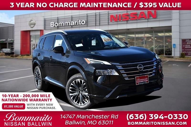 Super Black 2026 Nissan Rogue Platinum 4D Sport Utility AWD CVT with Xtronic 1.5L DOHC AWD. 28/35 City/Highway MPG Every New Nissan receives a 10 year/ 200,000 mile nationwide warranty and 3 years of NO CHARGE maintenance included! Visit Missouri's #1 Automotive Group for a better price and better service.