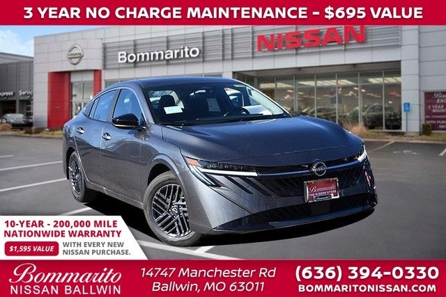 Gun Met 2026 Nissan Sentra SV 4D Sedan FWD CVT with Xtronic 2.0L I4 DOHC CVT with Xtronic, Char Premium Clth Cloth. 30/38 City/Highway MPG Every New Nissan receives a 10 year/ 200,000 mile nationwide warranty and 3 years of NO CHARGE maintenance included! Visit Missouri's #1 Automotive Group for a better price and better service.